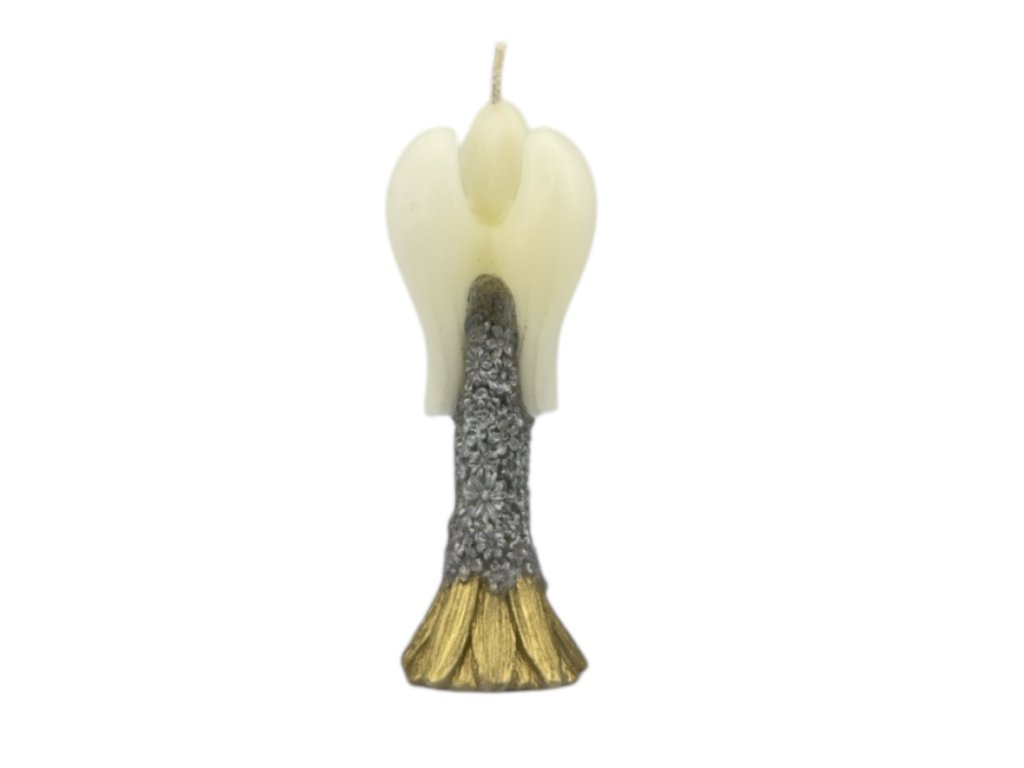 Svíčka Malý Andílek se srdcem, stříbrný 10 × 3,5 cm – jemný symbol ochrany a lásky pro každý prostor