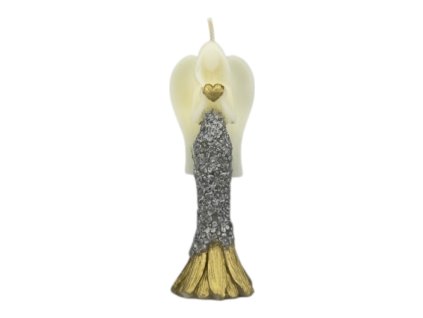 Svíčka Malý Andílek se srdcem, stříbrný 10 × 3,5 cm – jemný symbol ochrany a lásky pro každý prostor
